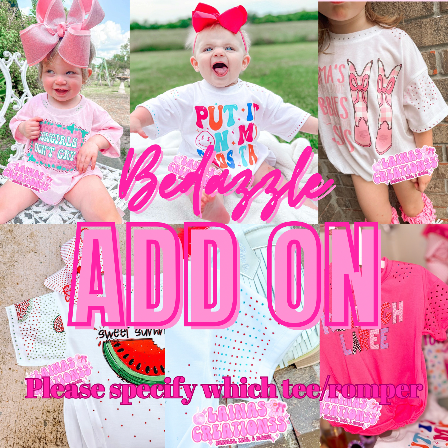 Must add one listing PER bubble/tee you’re wanting bedazzled! MUST clarify in notes which bubble/tee you’re wanting bedazzled. Example: 2 bubbles bedazzled, add 2 “bedazzle add on” to cart